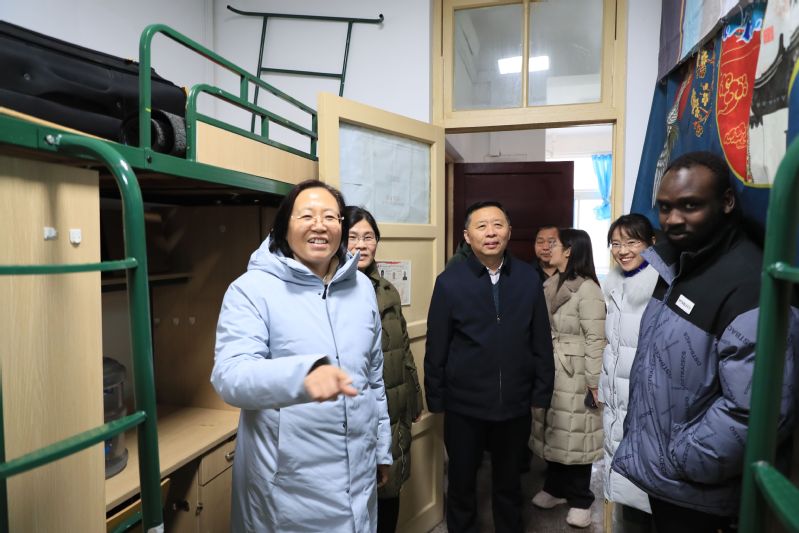 为确保留学生在校内舒心安心度过春节,刘书记一行实地察看了留学生公寓信息工程改造、学生宿舍消防设施设备配备情况。刘书记亲切关怀留学生在校的学习和生活情况,叮嘱他们要增强安全防范意识、做好日常安全防范,并提前为他们送去新春祝福。
