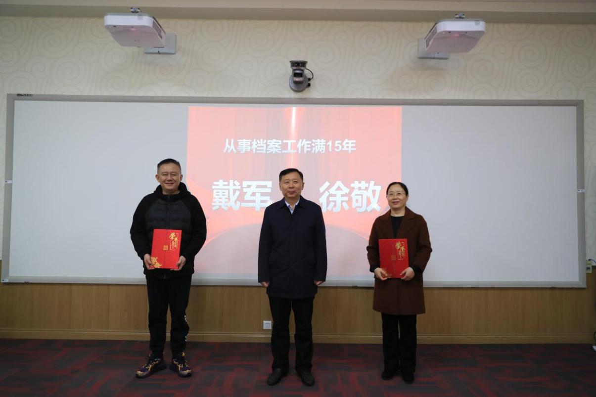 会上,孙健身副院长对档案工作在学校发展中的作用给予高度评价,并深刻阐述了档案工作的重要性。他指出,档案工作虽不显山露水,但对学校发展和校友服务具有不可替代的作用。他对全体档案员提出要求,工作中要细致、认真、负责,齐心协力推动档案工作规范化、科学化、现代化。孙健身副院长还强调,各部门要高度重视档案工作,为学校档案工作的顺利开展提供有力保障。会上,他还为戴军、徐敬两位老师颁发了从事档案工作满15年的荣誉证书,以表彰他们为档案工作作出的杰出贡献,激励其他老师学习他们身上默默奉献、坚守岗位的精神。