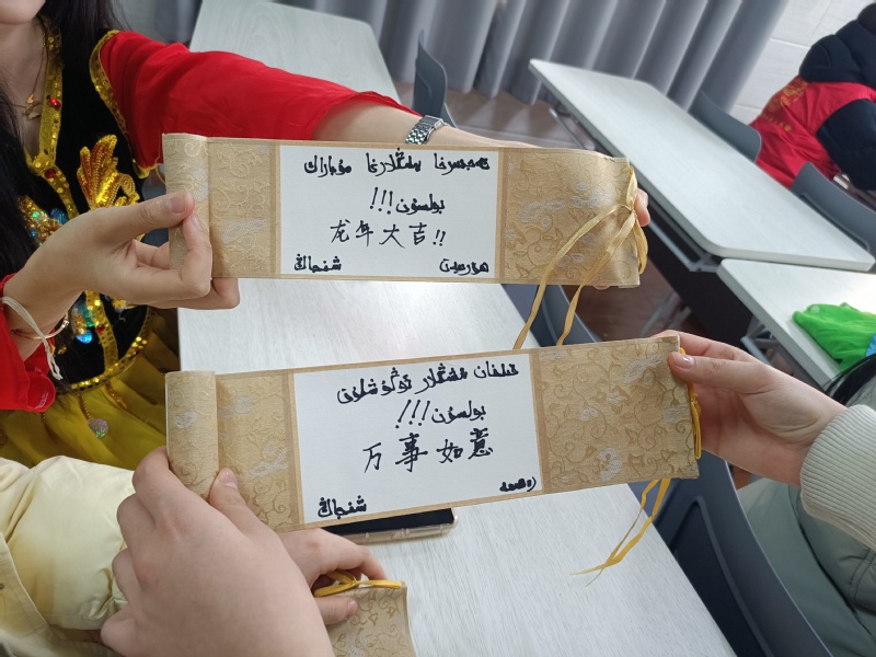 随后,红石榴志愿服务队走进祥和小学,为师生们带来了一场别开生面的文艺盛宴。志愿者们身着各自民族的传统服饰,翩翩起舞、歌声悠扬,将不同民族的文化魅力展现得淋漓尽致。其中,“最美的祝福送给你”书法活动更是将现场气氛推向了高潮,志愿者们用各自民族的语言文字,为小朋友们书写了寓意深远的祝福语,传递出了“民族团结一家亲”的欢乐氛围。放学时,志愿者们走上了护学的岗位,协助维护放学秩序,确保学生们的安全。