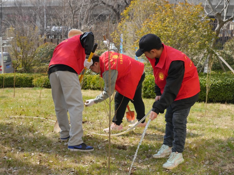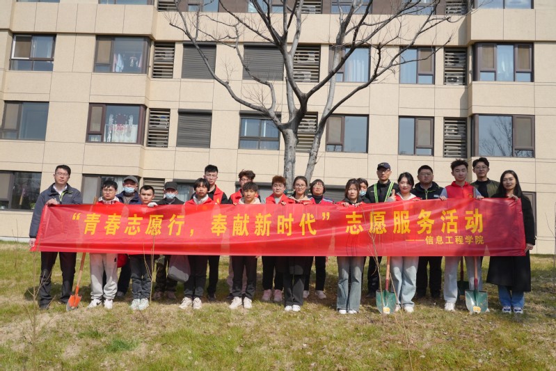 文明社区齐创建,植树护绿我践行。为进一步改善社区环境,提高社区绿化水平,在第46个植树节来临之际,信息工程学院组织学生于3月11日前往徐州市万科尚都会小区开展“青春志愿行,奉献新时代”主题植树节活动,充分发挥学院青年志愿者模范带头作用,弘扬雷锋精神。活动现场,师生们分工合作,配合默契,挖坑、扶苗、培土、浇水、覆土,每一道工序都一丝不苟,在大家的共同努力下,共种下40余株树苗。广大志愿者纷纷表示,植树造林是功在当代、利在千秋的民生工程,我们不但要弘扬植树造林的文明新风,还要倡导绿色生活方式,为建设美丽中国加油出力。此次植树活动深入贯彻落实习近平生态文明思想,青年志愿者服务队以实际行动真正体会到“植树造林,绿化家园”的重要意义,既弘扬了雷锋精神,又激发了青年学生植绿、爱绿、护绿的责任感,以实际行动践行“绿水青山就是金山银山”的发展理念。