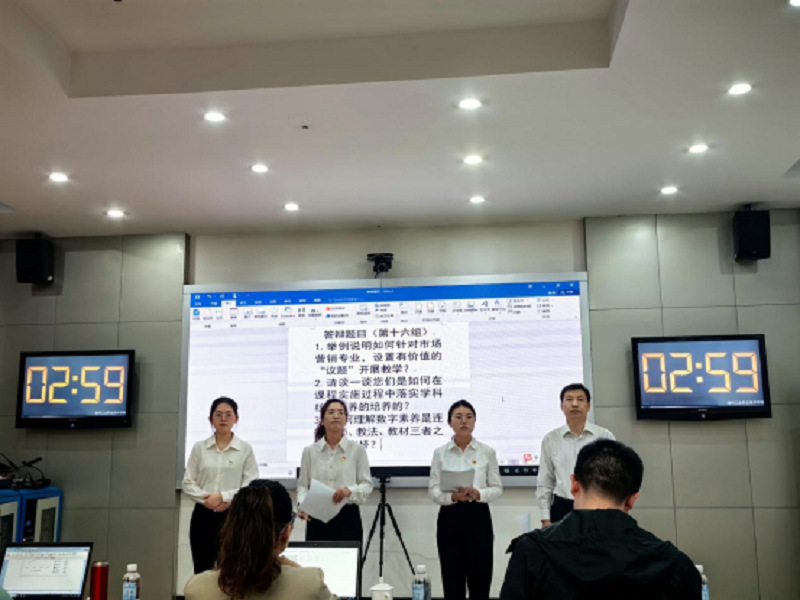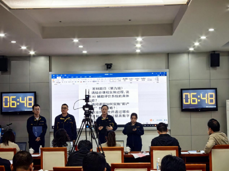 本次校级决赛对标国赛和省赛赛制,精心策划、组织安排,经各教学单位推荐和初赛选拔,共遴选出16组作品入围现场决赛。参赛团队按照抽签顺序依次完成教学实施报告汇报和现场答辩两个环节,评委根据比赛评审指标进行现场评分。