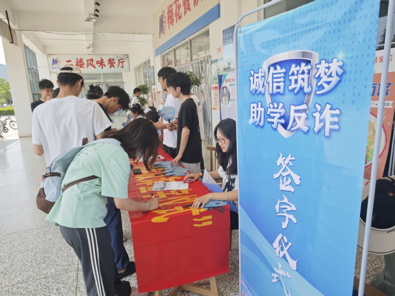5月24日,我校“诚信筑梦·助学反诈”主题宣传教育活动在第二学生食堂门前举行。本次活动是我校贯彻社会主义核心价值观、落实立德树人根本任务的重要举措,旨在提升大学生的诚信意识,增强其识别和防范诈骗的能力,为广大学子的成长之路保驾护航。本次活动由学生工作处主办,工商管理学院承办,吸引了全校逾千名学生积极参与。