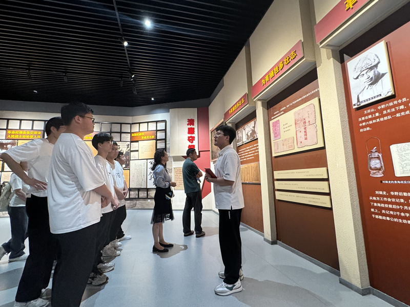 随后,同学们走进淮海战役纪念馆,玻璃橱窗里陈列的一件件物品,都向同学们诉说着那一段铭心刻骨的历史。站在纪念馆大厅,闭上眼睛仿佛还能听到当年那场战役的冲锋号声,鼻尖好似能闻到浓烈的硝烟味。场馆内,同学们在美国援助国民党的先进武器和人民帮助解放军的扁担、马车、小推车的悬殊对比中,对“人民的胜利”有了更为深刻的认识。