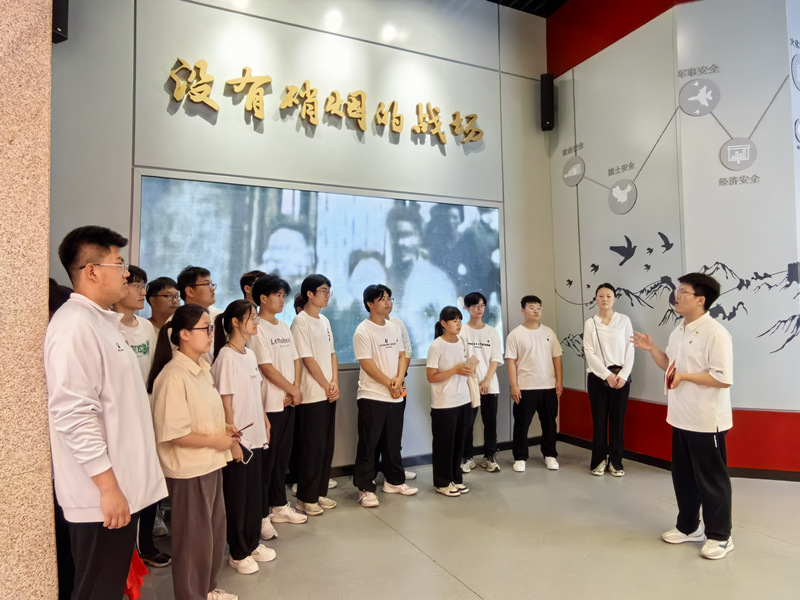 最后,师生来到了国家安全教育馆,王军雨老师在场馆门口让大家集体默背入党誓词,思考“严守党的纪律”“保守党的秘密”这两句誓词内容,并以此为切入点,现场开展“守护国家安全,做合格党员”的实境微党课。同学们纷纷表示,通过参观和老师现场的讲授,对国家安全的定义有了更为深入的认识,自己也将和同学们一道携手共筑国家安全的堡垒。