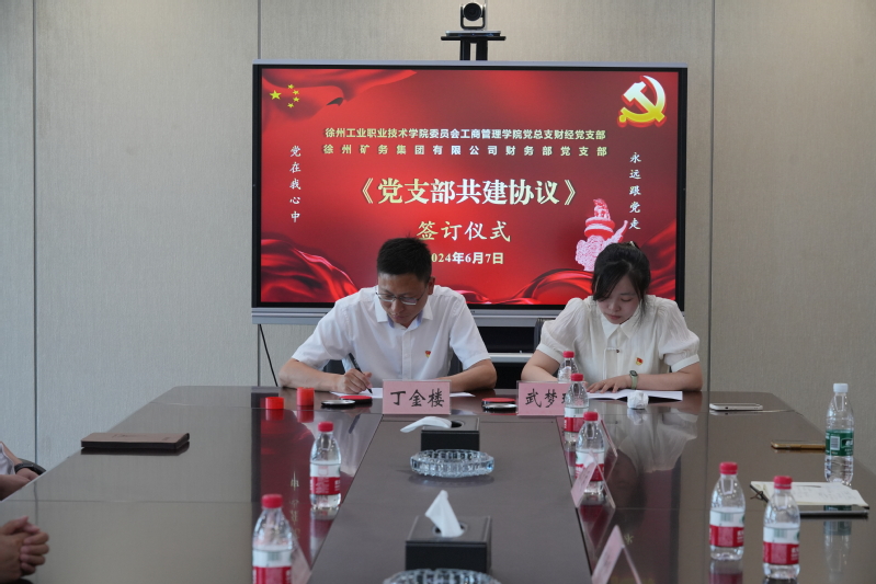 随后的座谈会上,双方交流了基层党组织建设及开展党纪学习教育的特色做法,并围绕企业转型升级中的财务人才培养、课程体系构建、项目研究以及在新质生产力背景下如何加强党建引领、促进专业发展等议题展开了深入交流。工商管理学院财经党支部与徐州矿务集团有限公司财务部党支部正式签署支部共建协议,双方将在党建工作互学互鉴、资源共享上建立长期合作关系,以党建引领业务并以此为契机不断探索校企合作新模式,共同培养适应社会发展需求的高素质技术技能人才,为推动徐州地方经济发展贡献力量。