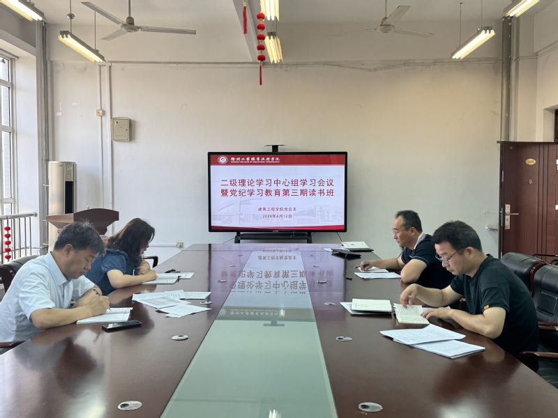 6月12日,建筑工程学院党总支在B01-309召开二级理论学习中心组暨党纪学习教育专题读书班第三次集中学习,会议由党总支书记赵音主持。