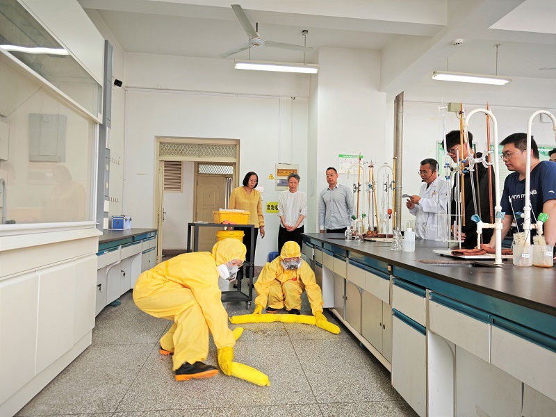 为落实学校关于2024年安全生产月的工作要求,进一步提高化学工程学院实验室安全应急能力,完善应急体系,提升全院师生实验室安全应急能力和实战水平,营造“人人讲安全、个个会应急”的良好氛围,6月24日,化学工程学院组织开展实验室危险化学品泄漏事故应急演练。学校党委书记刘莹、化学工程学院领导班子及师生参加了演练。