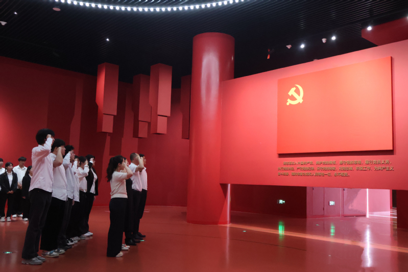 接着,在鲜艳的党旗下,全体党员庄严列队重温入党誓词。