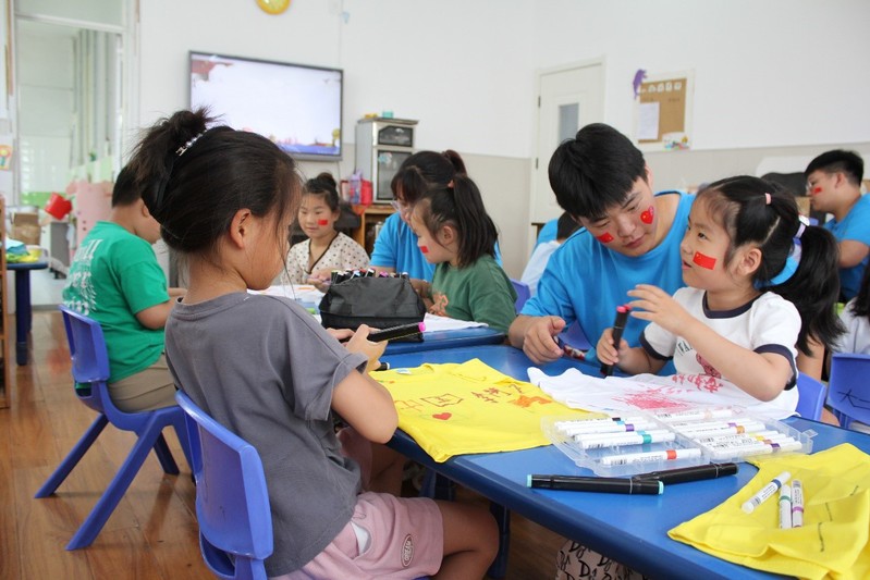 “幼”见中国心,手绘爱国情。实践团联合徐州市鼓楼区城市花园幼儿园开展红色文化传承活动。活动伊始,志愿者们通过播放生动有趣的动画短片、讲述经典的红色故事等方式,小朋友们被深深吸引。随后,DIY衣服环节正式开始,志愿者们耐心地向小朋友介绍各种材料和工具的使用方法,手把手地指导他们在白色的衣服上进行创作。小朋友们充分发挥自己的想象力,用五彩斑斓的画笔描绘出心中对祖国的热爱。有的画了雄伟的天安门,有的画了鲜艳的五星红旗在风中飘扬,还有的用稚嫩的笔触写下了“祖国我爱您”的深情表白……一幅幅作品充满童趣、童心、童真,满满都是对祖国的纯真祝福。