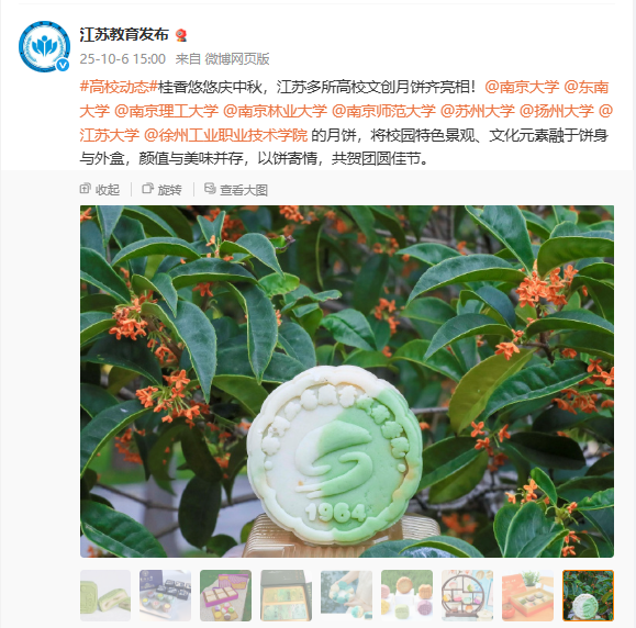 【江苏教育发布】#高校动态#桂香悠悠庆中秋,江苏多所高校文创月饼齐亮相!