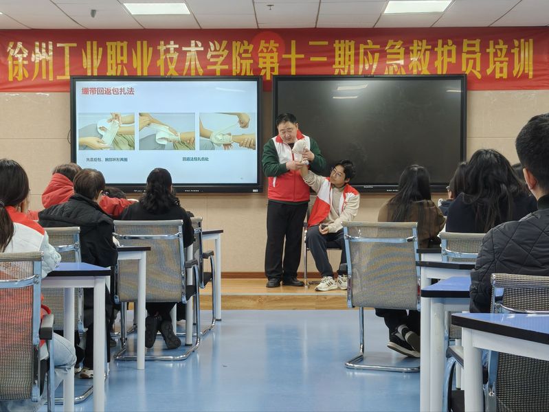 为全面提升师生应急救护能力,构建坚实的校园安全防护网,11月15日至16日,我校红十字会联合徐州市鼓楼区红十字会,共同组织开展了第十三期校园应急救护员培训。此次培训面向2025年新入职的教职工及学生干部群体,采用理论授课与实操演练相结合的模式,系统讲授心肺复苏、创伤救护、气道异物梗阻的处理等核心技能,为校园安全提供有力保障。