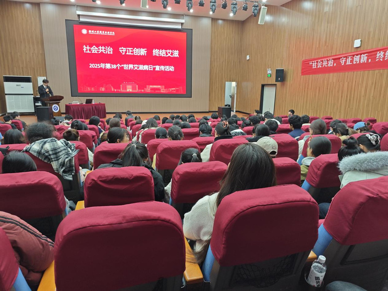 2025年12月1日是第38个世界艾滋病日,为进一步推动艾滋病防治工作,11月26日,我校卫生所联合徐州市疾病控制中心、鼓楼区疾病控制中心在西门报告厅举办“社会共治,守正创新,终结艾滋”主题宣传活动。