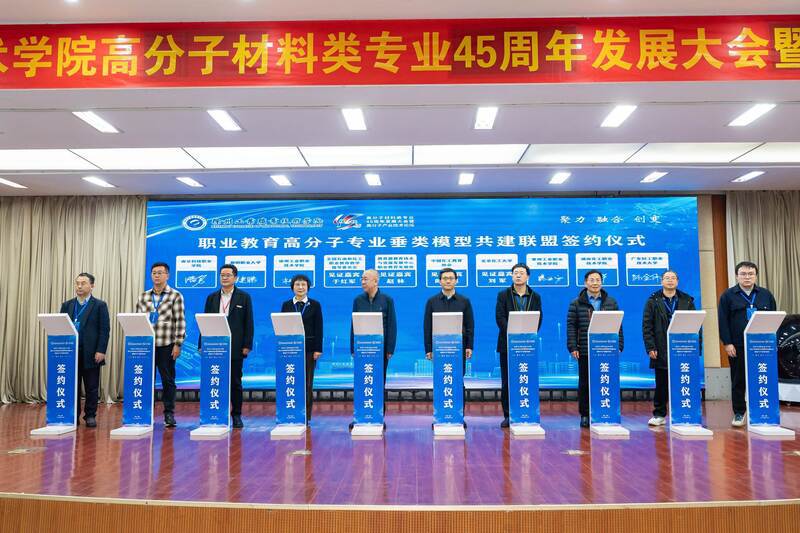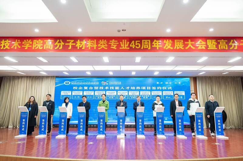 当前,新一轮科技革命和产业变革深入推进,新材料、智能制造、绿色化工等前沿领域加速演进,高分子行业正朝着高端化、智能化、绿色化转型,对技术创新和人才培养提出了更高要求。面对行业变革浪潮,徐州工业职业技术学院主动应变,以此次大会为契机,交出了一份产教融合、科教融汇的创新答卷:“新劲力产业学院”正式揭牌,校企携手搭建育人新平台;《高分子行业学习成果认证标准》发布,为行业人才成长建立“通用标尺”;全国职业教育高分子专业垂类模型共建联盟启动,聚合院校、企业、科研机构力量推动专业建设数字化变革;多家校企签订复合型技术技能人才培养协议,探索“材料+装备+智能”跨领域培养新模式,让人才培养与产业需求实现“无缝衔接”。
