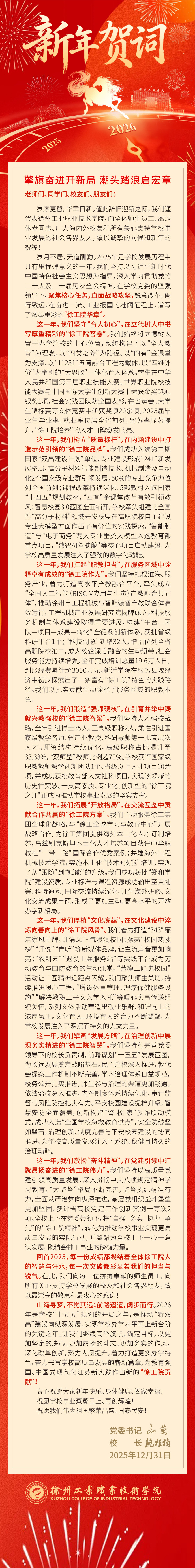 擎旗奋进开新局 潮头踏浪启宏章——徐州工业职业技术学院2026年新年贺词