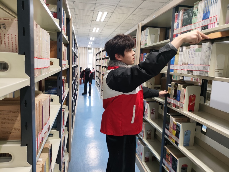 活动中,志愿者们在图书馆老师的指导下,分工协作、有序开展服务。大家认真整理书架,将错放、乱序的图书逐一归位,确保馆藏图书排列规范;协助维护阅览区环境,擦拭书架、清理杂物,为师生营造整洁舒适的阅读空间;在还书处协助工作人员进行图书借阅登记、咨询引导,耐心解答师生疑问,提升借阅服务效率。同学们以饱满的热情和细致的态度,用双手守护书香阵地,展现了新时代青年的责任与担当。
