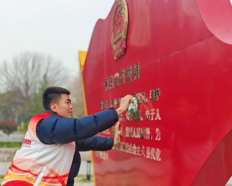 结束街巷整治后,志愿者们前往鼓楼区宪法公园继续开展志愿服务活动。大家沿着公园步道、草坪仔细捡拾垃圾、清扫落叶,让公园环境更加清新优美。此外,志愿者们还细心擦拭宪法立牌和宣传展板,擦去表面灰尘,让法治宣传内容清晰醒目。在劳动中,同学们既美化了公共环境,也潜移默化接受了法治文化熏陶,实现了奉献与成长的双向收获。