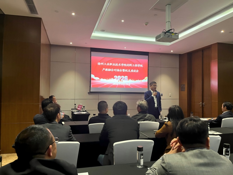 为深化产教融合、凝聚校友力量、拓宽校地校企合作渠道,4月21日下午,材料工程学院2026年产教融合对接会暨校友座谈会在上海嘉定喜来登酒店顺利举行。会议由材料工程学院院长柳峰主持,学校副校长曾凡远教授出席并致辞,继续教育与培训学院、材料工程学院师生代表、徐州淮海国际港务区、珠山数字经济产业园代表、合作企业及优秀校友代表参会交流。