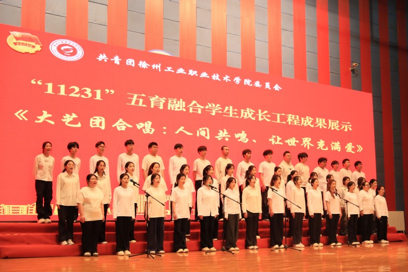 在“11231”五育融合学生成长工程成果展示环节,国防教育协会带来《戎装旋律:战术展演》,参演学生身姿挺拔、动作利落,尽显徐工院青年的硬核作风与国防情怀;红十字协会通过《心肺复苏技能演示》,为同学们直观普及“黄金四分钟”急救知识,带来一堂生动的生命健康教育必修课;吾言朗诵社以一首《血脉里的回响》诗朗诵深情回望峥嵘岁月,发出新时代的青年誓言;最后,大学生艺术团以《人间共鸣》《让世界充满爱》的温暖合唱收尾,用清澈嗓音唱响心灵交响,将青春大爱传递至现场每一个角落。大会在嘹亮的团歌声中圆满落下帷幕。