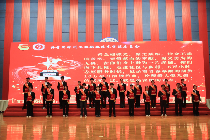 副校长孙健身宣读学校2025年度共青团“五四”表彰决定,勉励全校基层团组织和全体团员青年以先进为榜样,勤于学习、甘于奉献、勇于创新、敢于超越。会上,分别对暑期社会实践全国优秀团队、江苏省优秀共青团员、信仰公开课、团干部思政技能大比武、“挑战杯”、见义勇为、拾金不昧、志愿服务、无偿献血等项目中表现突出的集体和个人,以及校级“两红两优”“薪火青春”青年文化节、“筑梦青春”科技文化艺术节等获奖代表进行了表彰。
