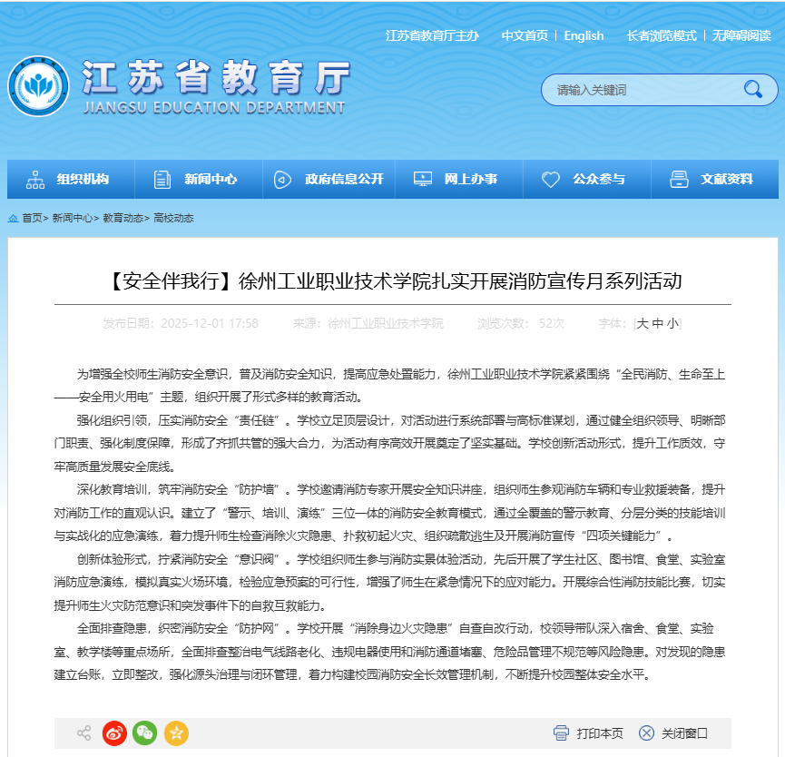为增强全校师生消防安全意识,普及消防安全知识,提高应急处置能力,徐州工业职业技术学院紧紧围绕...