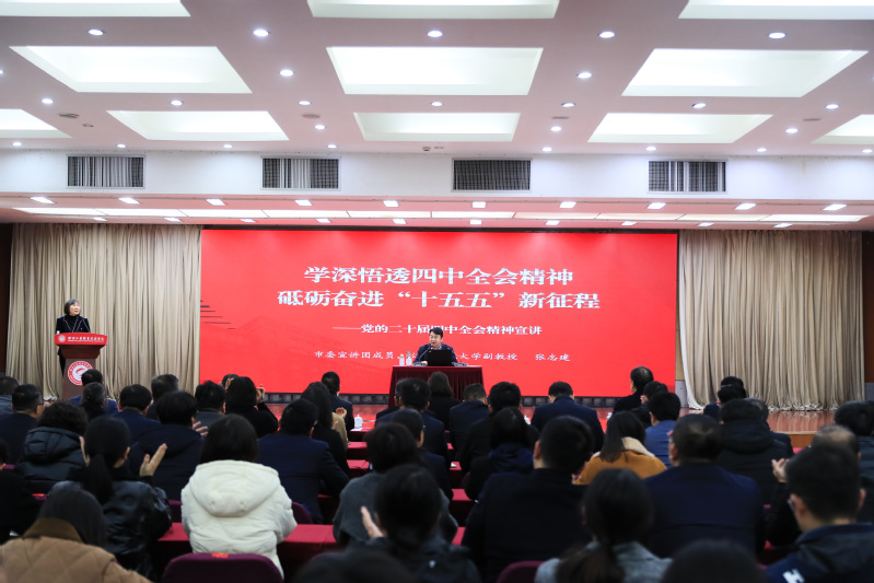 12月2日下午,我校在图书馆报告厅举行学习贯彻党的二十届四中全会精神市委宣讲团报告会。徐州市委宣讲团成员、江苏师范大学马克思主义学院张志建副教授来校作宣讲...